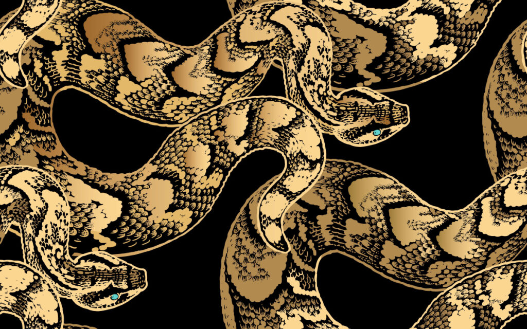 ToF Behang dieren illustratie slang in goud en zwarttinten