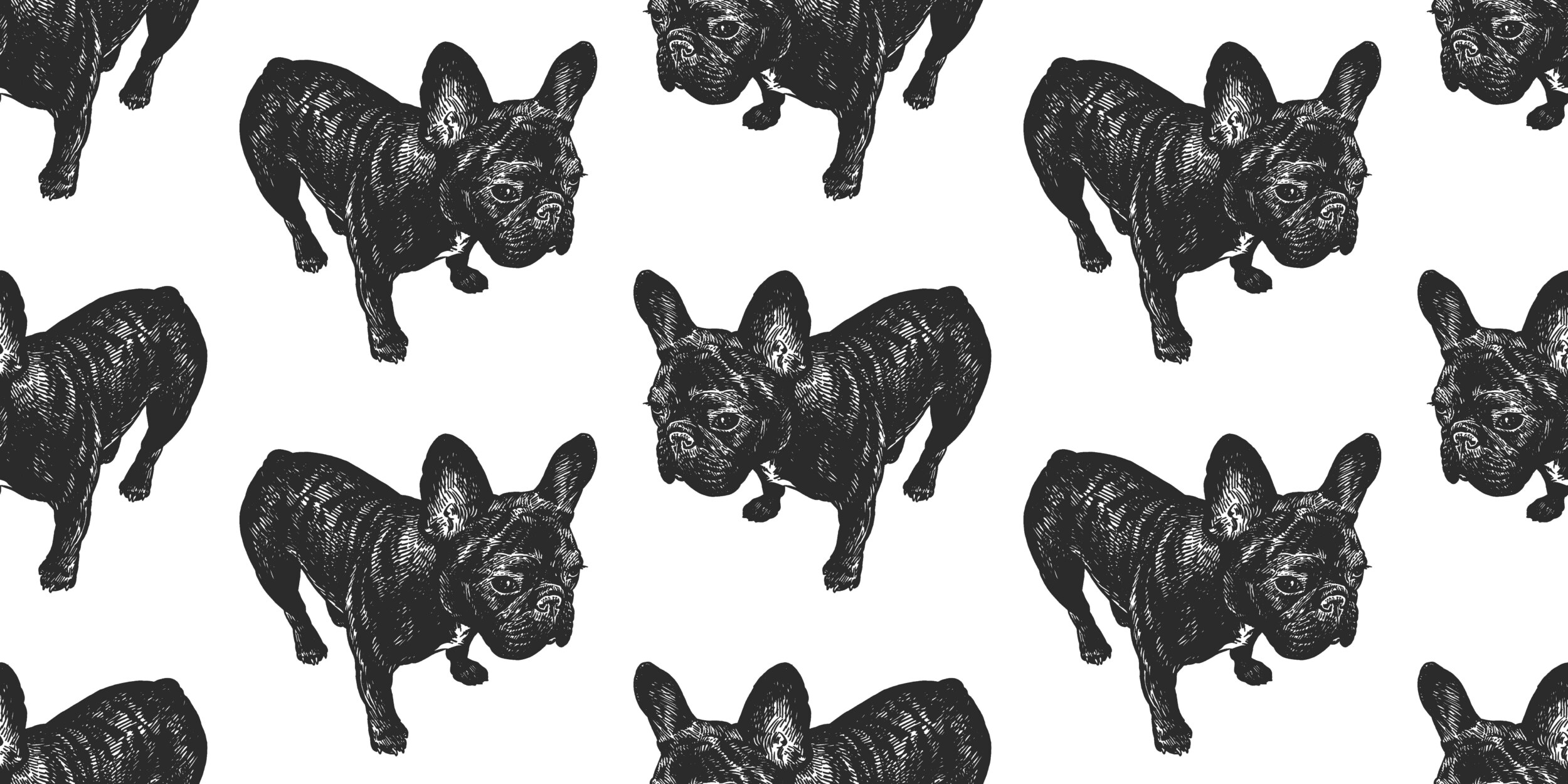 ToF Behang honden Franse buldogs zwart-wittekening