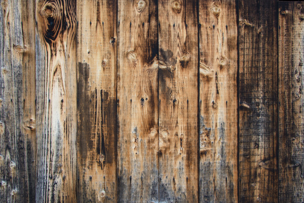 Fotobehang van verticale houten planken. Er zijn op het hout allemaal zwarte plekken te zien. Dit behang is mooi voor in de slaapkamer, bij de trap of op zolder. Dit fotobehang kan ook op een schuine wand. Al ons behang wordt op maat gemaakt. Geef de maten van jouw muur aan en ons systeem rekent automatisch uit hoeveel behang je nodig hebt. Daardoor past het altijd. Al ons fotobehang is in 5 verschillende materialen leverbaar.