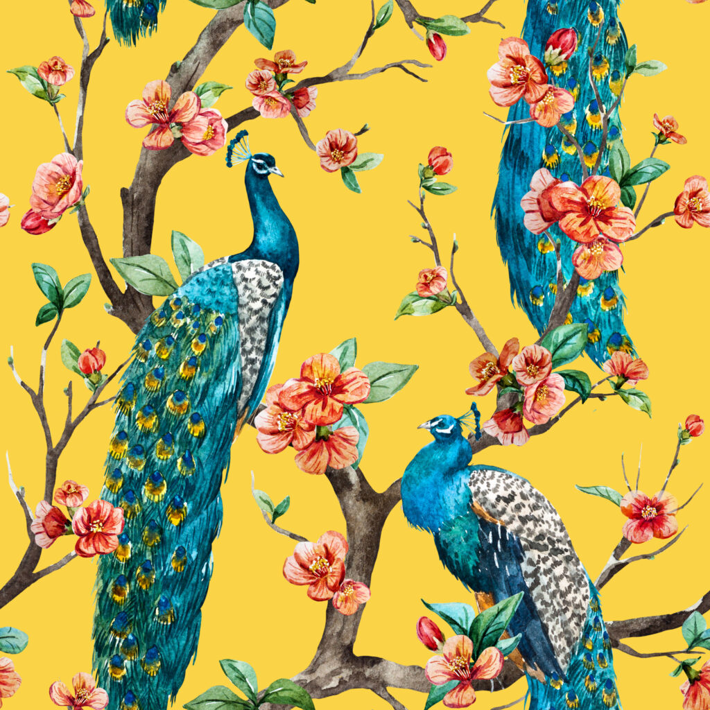 Wees de eerste om “ToF Behang pauwen illustratie meerdere pauwen op takken met bloemen” te beoordelen