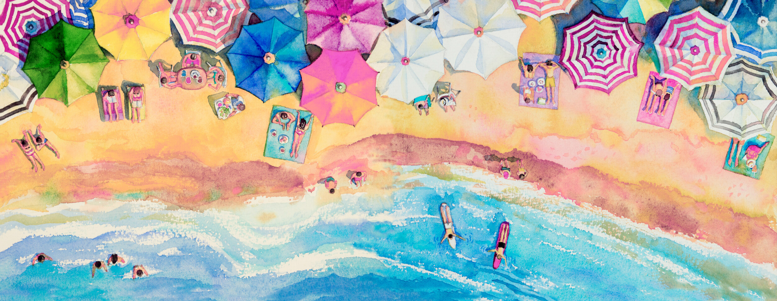 ToF Behang strand met parasollen geschilderd