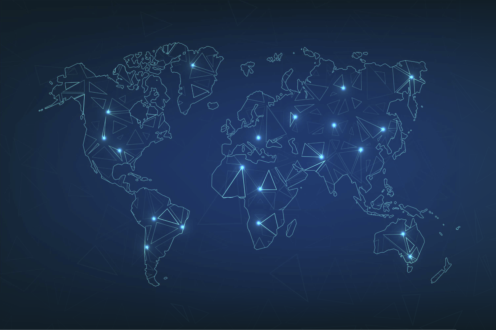 Op dit behang zie je een kaart van de wereld met daarop de randen van de verschillende continenten met daarin allerlei driehoeken. De illustratie is donkerblauw met lichtblauwe lijnen. Lijkt het jou mooi om dit behang aan je muur te hebben? Dan ben je bij ToF aan het juiste adres. Vul de maten van je muur in en ons systeem rekent automatisch uit hoeveel behang jij nodig hebt. Ook is het mogelijk om je behang in een stuk geleverd te krijgen. Zo heb je geen last van naden.