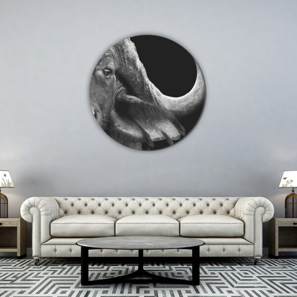 Op de ToF Behangcirkel dieren kaffer buffel zwart-wit is een Afrikaanse buffel, ook wel kafferbuffel genoemd, te zien. Van dit Afrikaanse rund zie je een close-up van een kant van de kop. Daardoor valt met name de ronde hoorn op. Door deze aparte uitsnede wordt je aandacht getrokken. Ook ziet deze behangcirkel er stoer uit doordat die in zwart-wit is. Deze behangcirkel is leverbaar met een doorsnee van 60, 80, 100 en 120 centimeter. De ToF Behangcirkel dieren kaffer buffel zwart-wit wordt op Gekkotex gedrukt. Dit materiaal is zelfklevend. Ook kun je de behangcirkel gemakkelijk verwijderen en ergens anders weer opplakken. Deze afbeelding is ook verkrijgbaar als fotobehang.