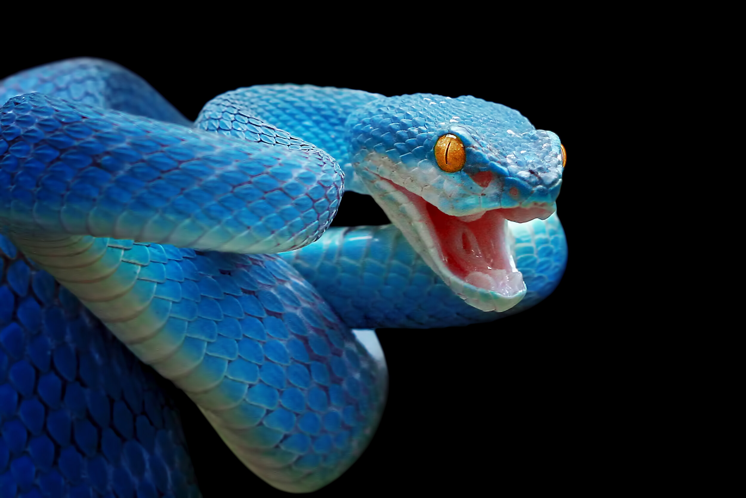 ToF Fotobehang dieren slang blauwe adder met open bek